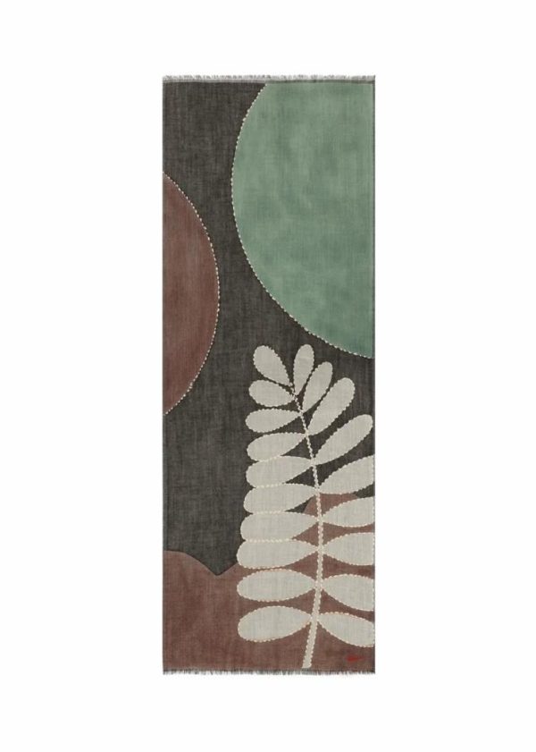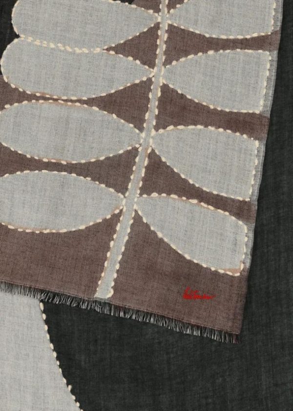 - Dieser Schal aus reiner Wolle überzeugt mit seinem aus geometrischen Formen und floralen Elementen bestehenden Muster, sowie handgestickten Details.