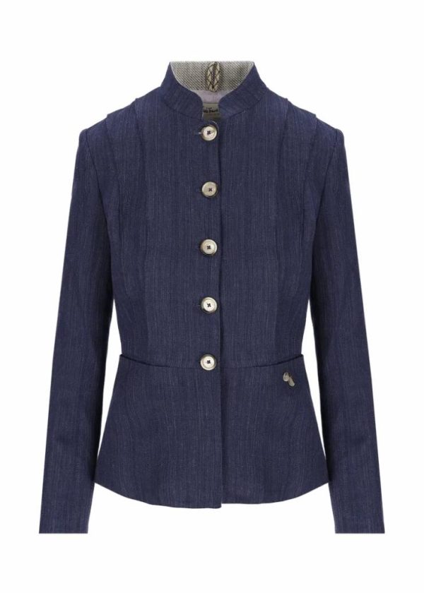 Damen Luis Trenker Blazer & Cardigans | Blazer Aus Baumwolljacquard Luramona Azurblau Kaltweiß