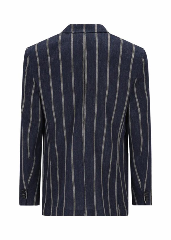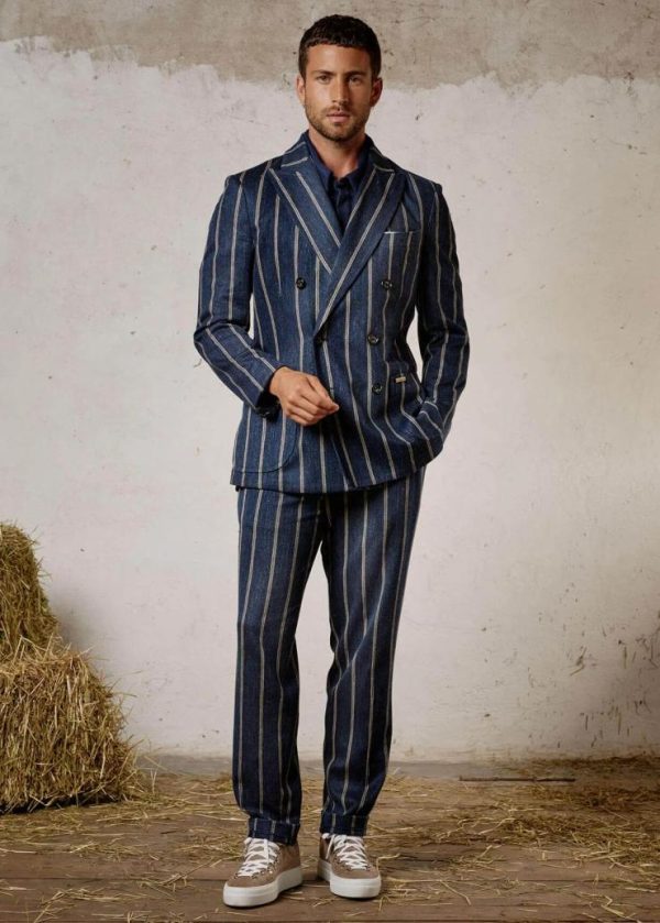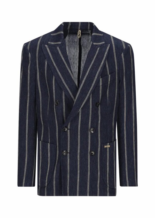 Herren Luis Trenker Blazer | Leinenblazer Mit Nadelstreifen Lusimone Dunkelblau Dunkelbeige