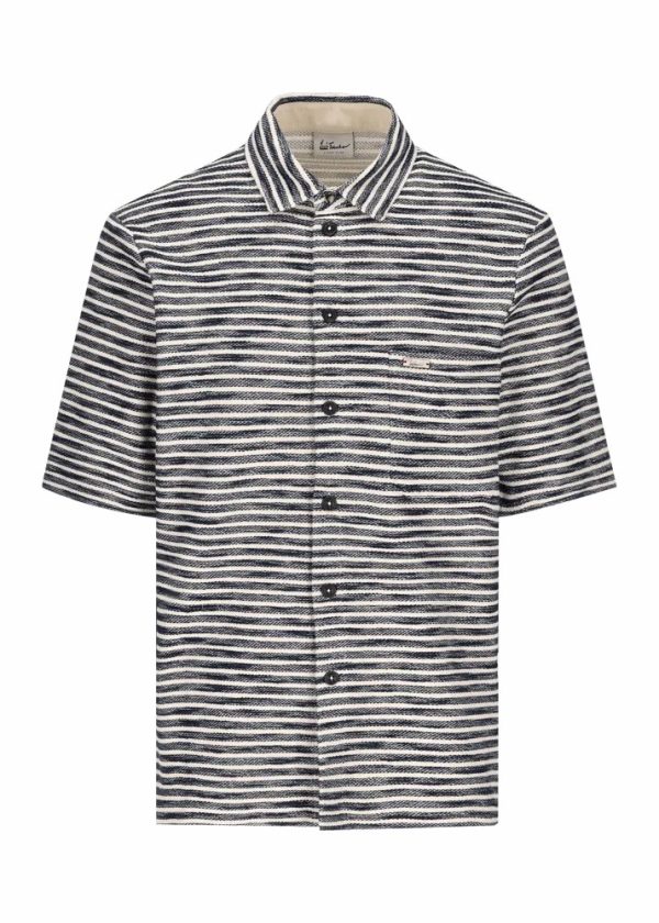 - Dieses lässige Sweat-Hemd im Regular Fit mit kurzen Ärmeln besteht aus leichtem Baumwolljersey mit horizontalen Streifen im Melange-Look. Die durchgehende Knopfleiste mit Knöpfen aus echter Steinnuss, der klassische Kentkragen und die aufgesetzte Brusttasche sind die Merkmale, die dieses Modell neben seinem unvergleichlichen Tragekomfort auszeichnen.