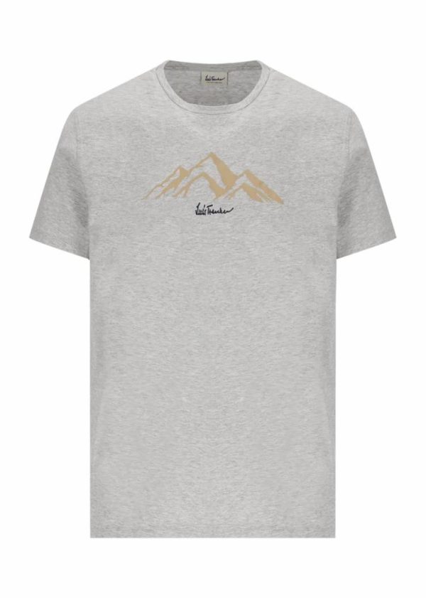 - Bergkette als Print auf der Brust, gesticktes Luis Trenker Logo